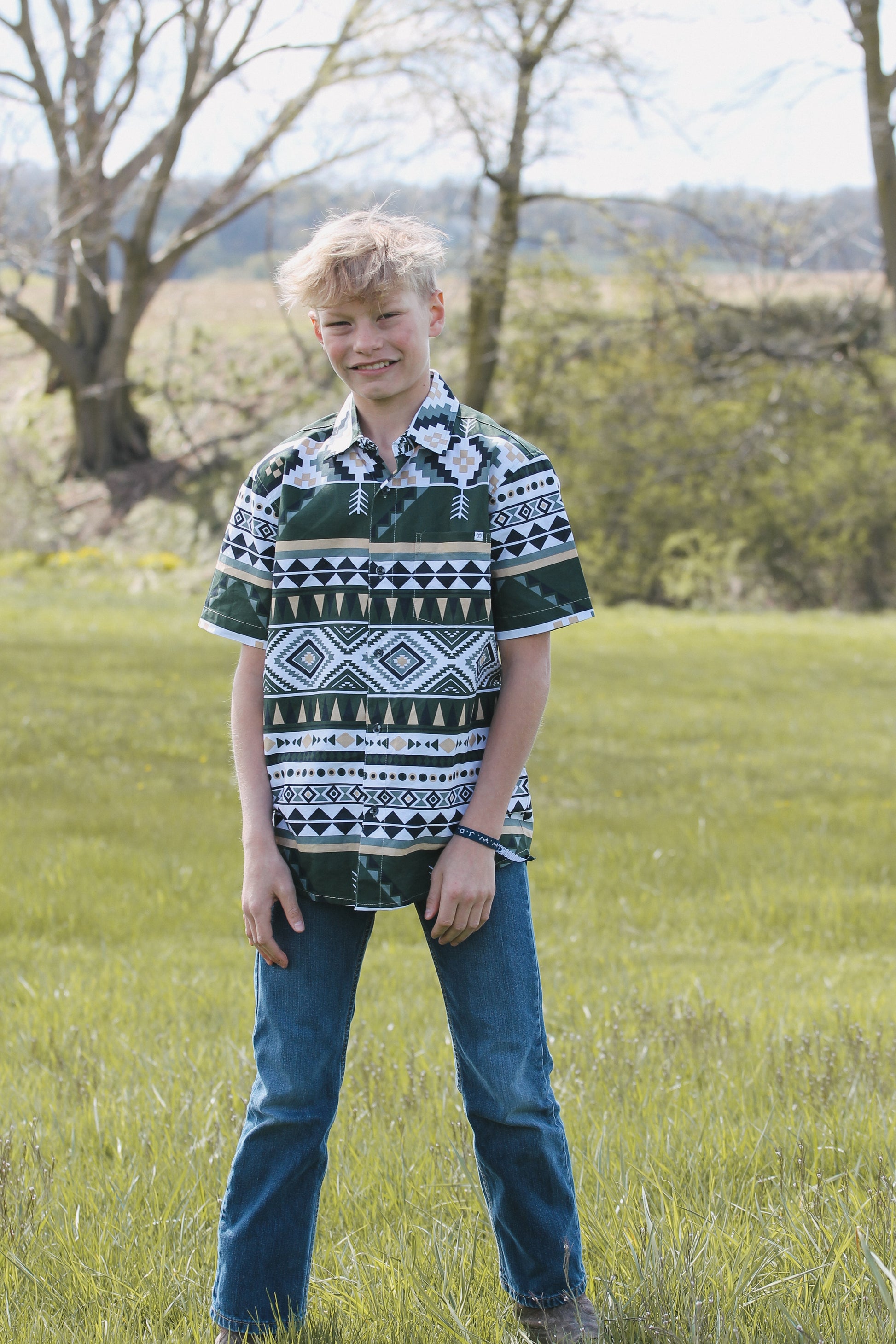 Kid's Aztec Button Up Short Sleeve