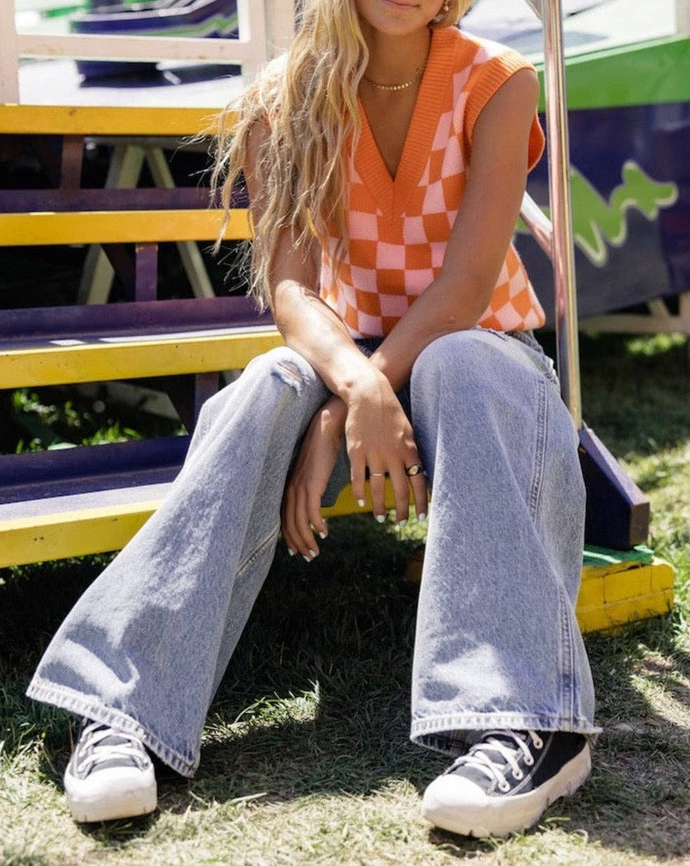 This checkered vest exudes an understated and enduring style, allowing effortless pairing with different bottoms. The sleeveless design offers a lightweight option, ideal for layering or wearing solo. Crafted with a knitted construction, it guarantees warmth and comfort, suitable for cooler temperatures. The regular fit ensures a comfortable and relaxed silhouette.