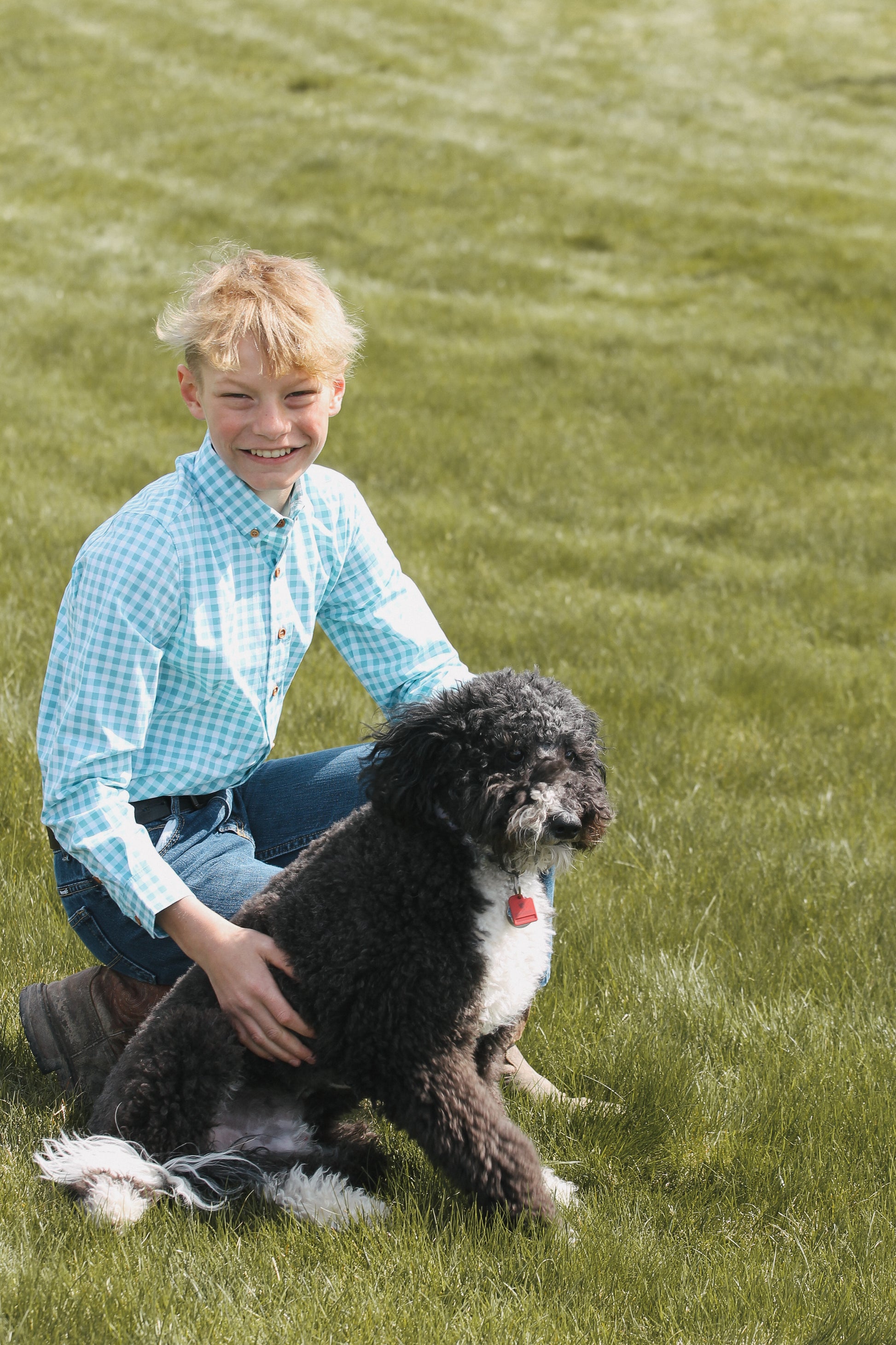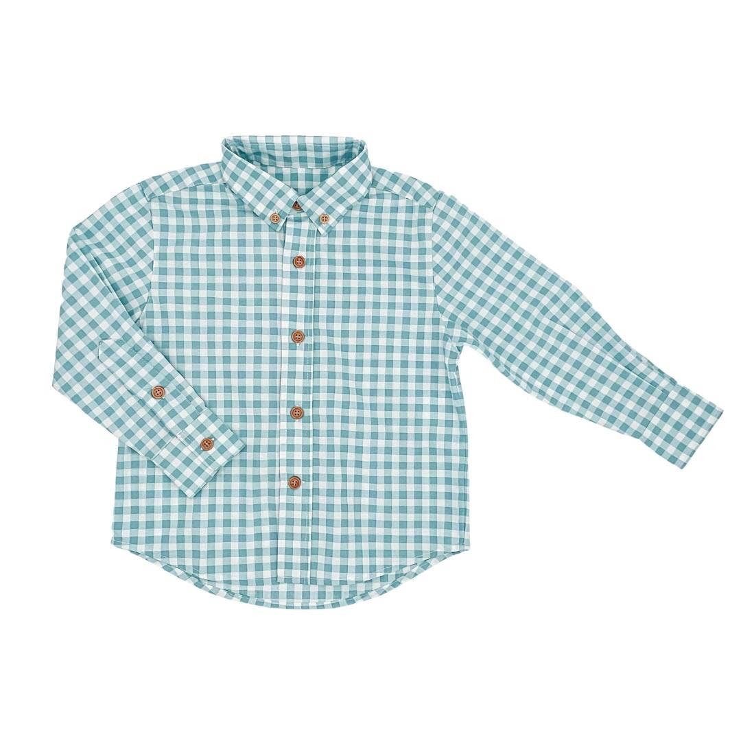 Kid's Green and White Plaid Button Up