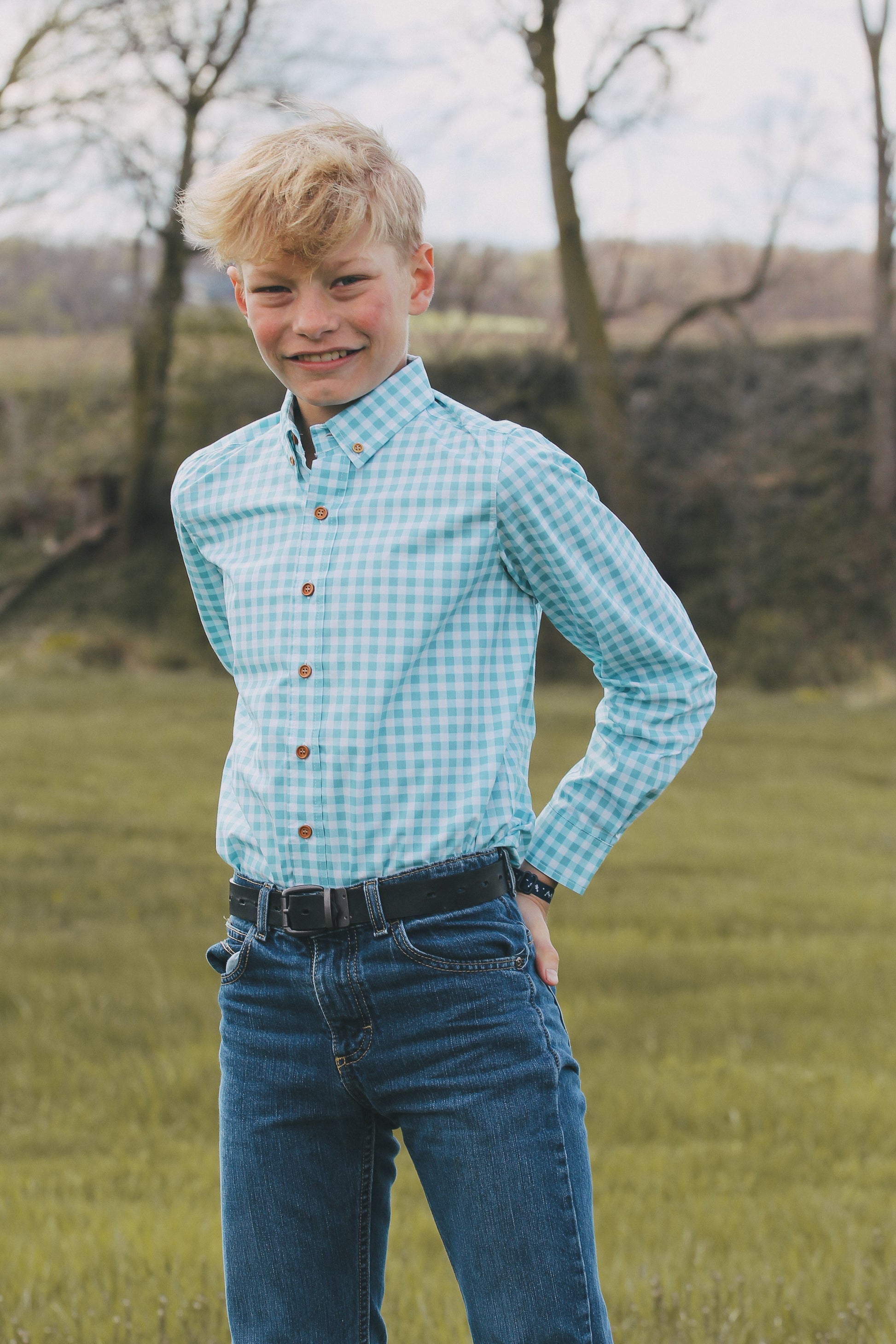 Add some playful flair to your little one's wardrobe with our Kid's Green and White Plaid Button Up. This trendy plaid design is sure to make them stand out, while also providing a comfortable and stylish option for any occasion.
