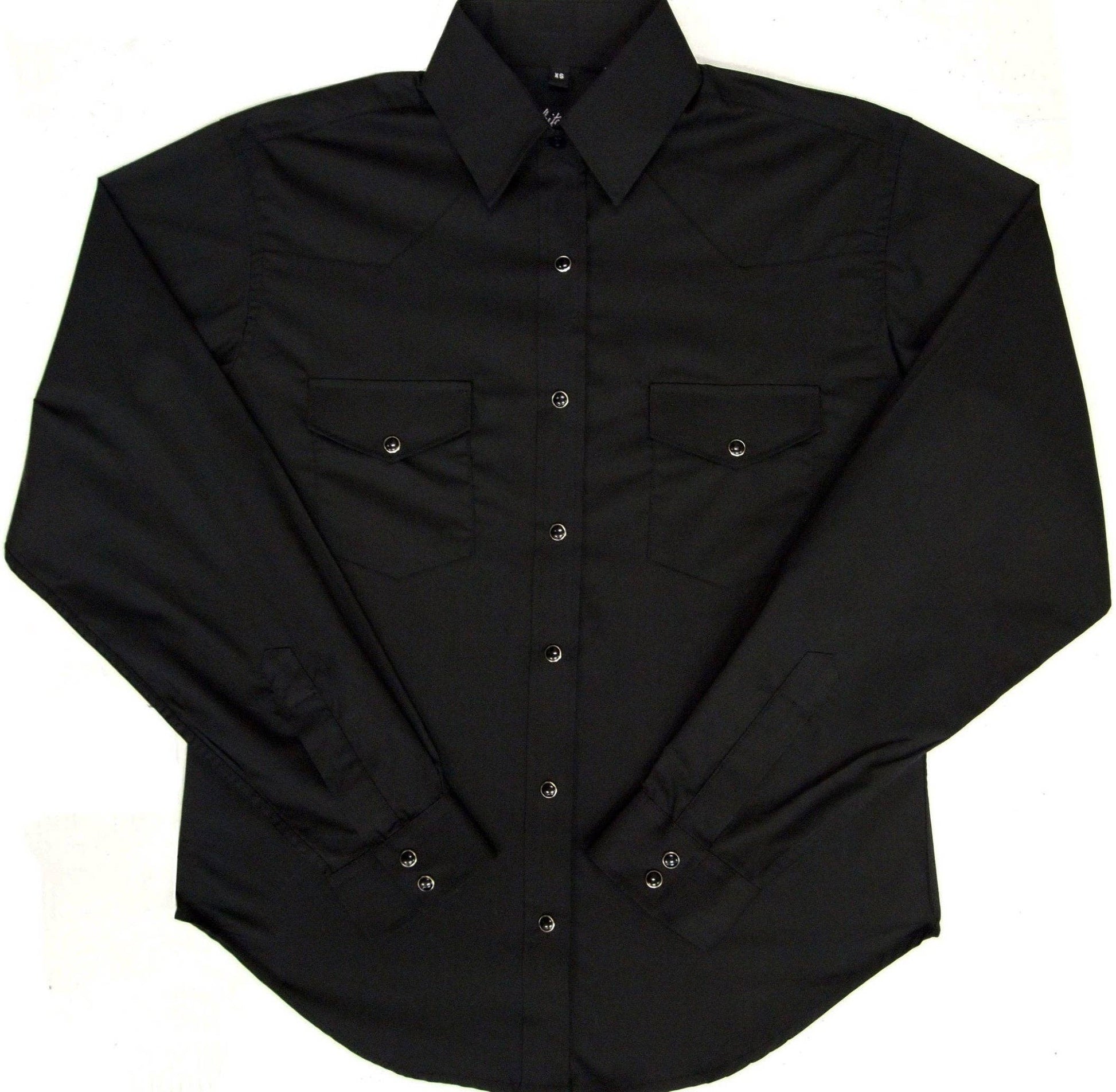 Elevate your style with our Women's Solid Black Button Up. Made with durable pearl snap closures, this shirt brings an elegant touch to any outfit. Look smart and sophisticated while feeling comfortable all day long.