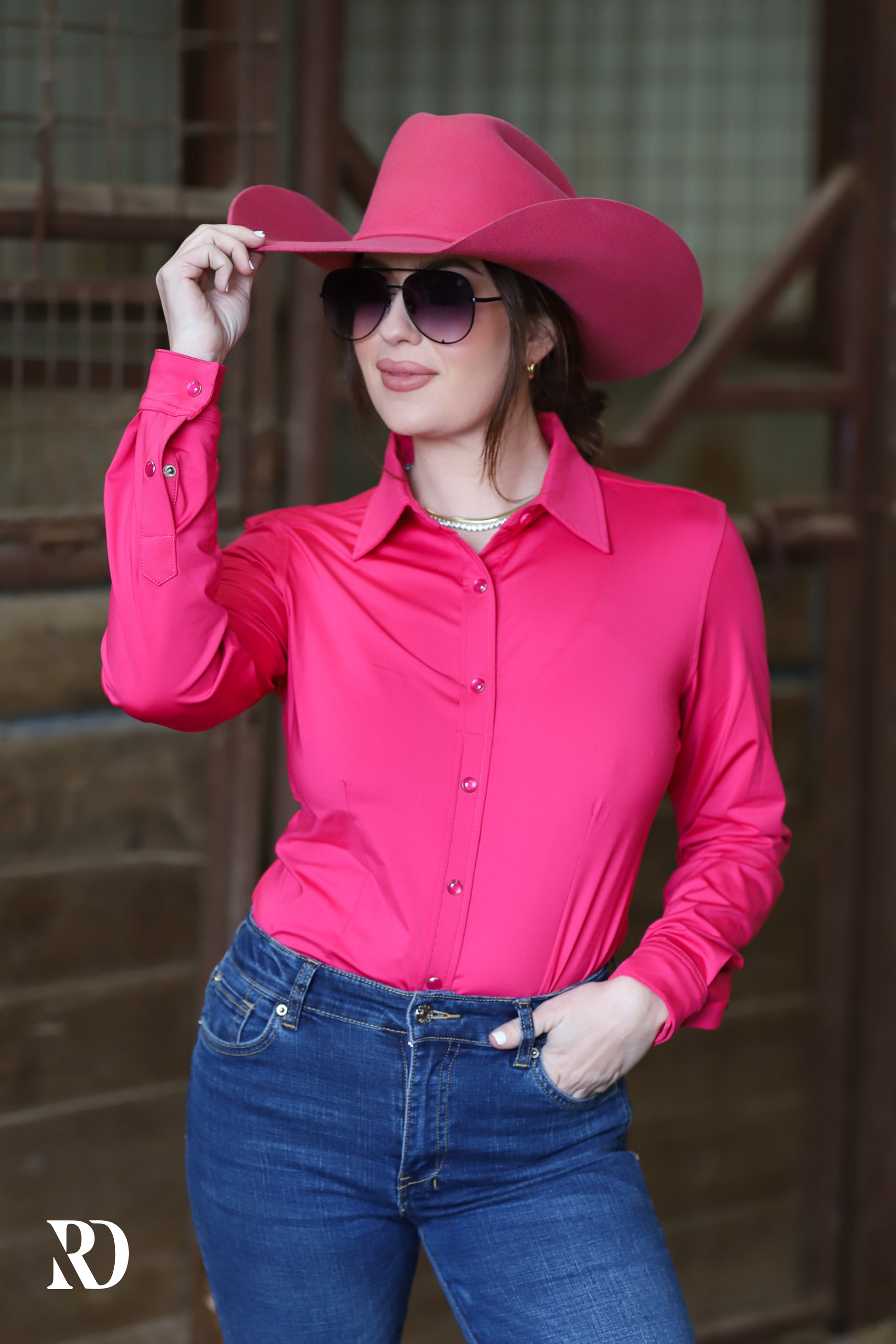 Crafted with a high-quality Poly Spandex Performance Blend, our Women's Magenta Performance Shirt boasts a lightweight and comfortable design. Its pullover style and 3 functional top buttons make it a convenient choice for on-the-go activities. Best of all, this shirt is wrinkle-resistant, ensuring a polished look every time.