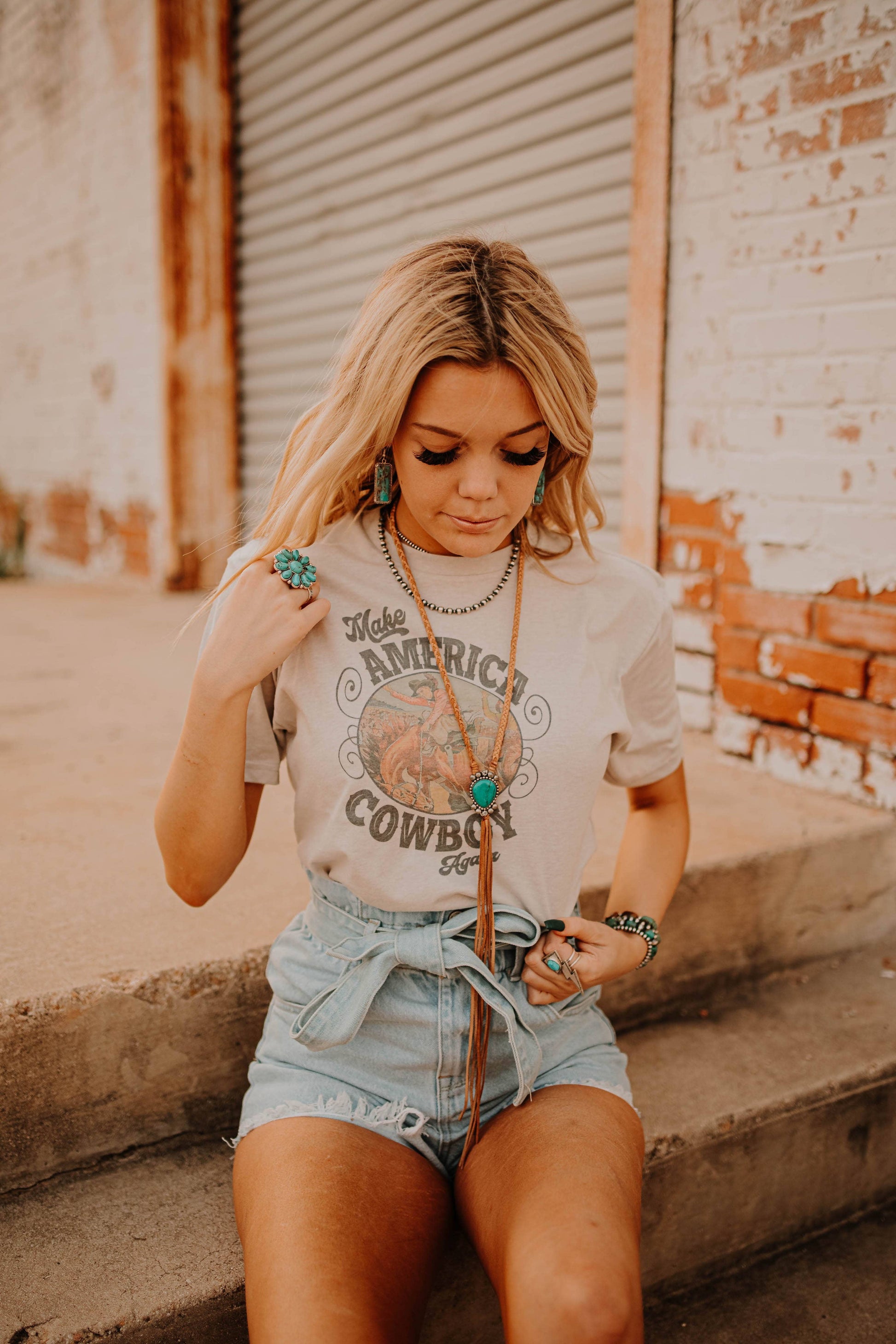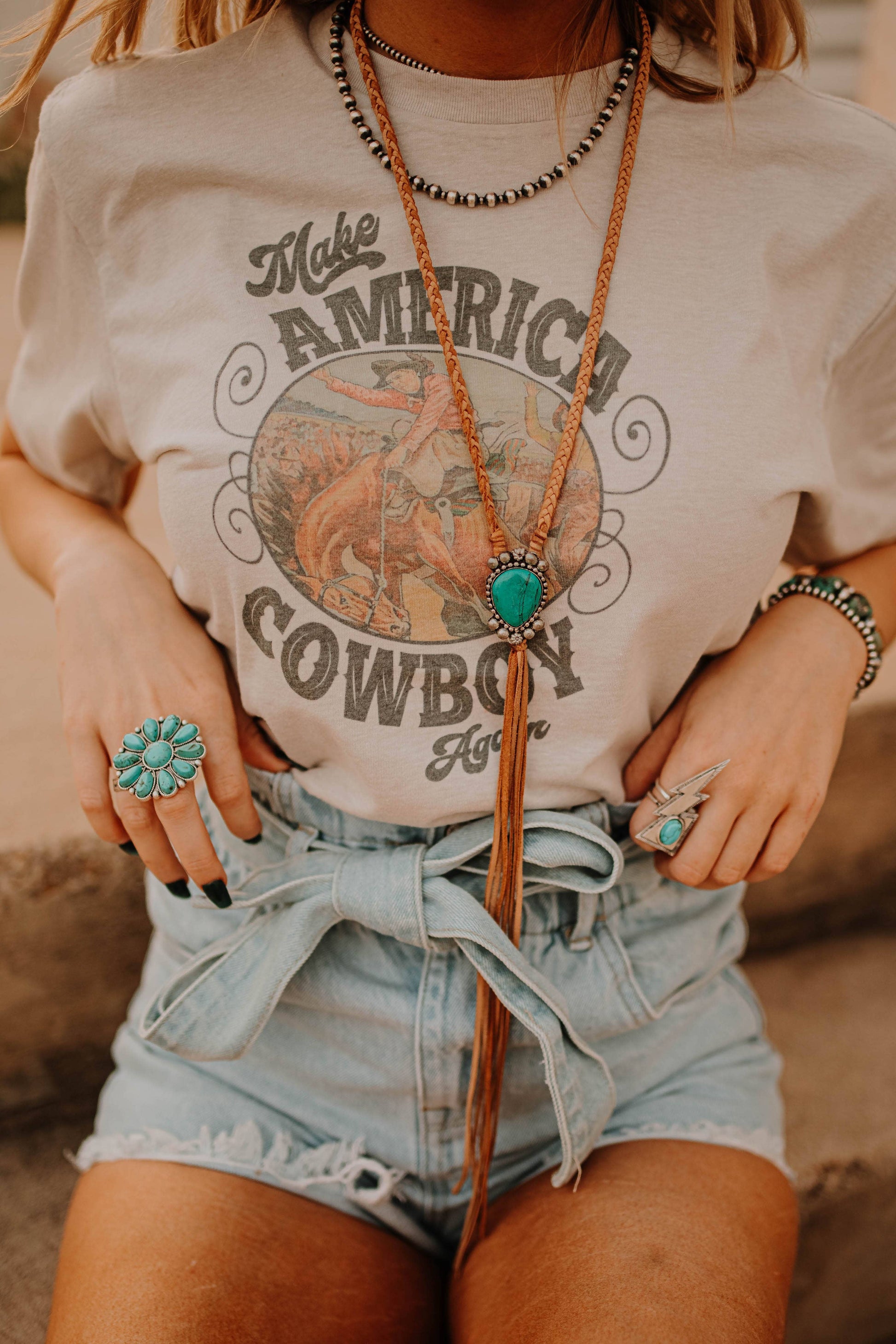 Saddle up for a taste of nostalgia with our Make America Cowboy Again Tee! This vintage-inspired tee is the perfect addition to your graphic collection. Embrace the timeless charm of cowboys and feel right at home with the rustic image and text style. Let's bring back the cowboy spirit and make America cowboy again!