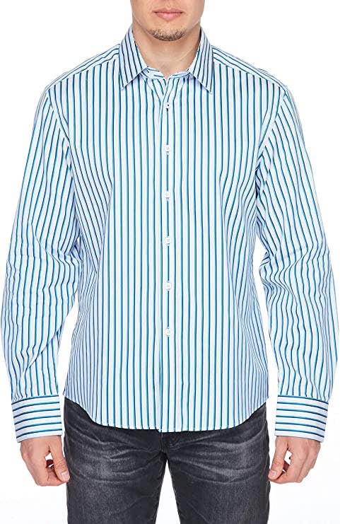 Men's Blue Striped Button Up