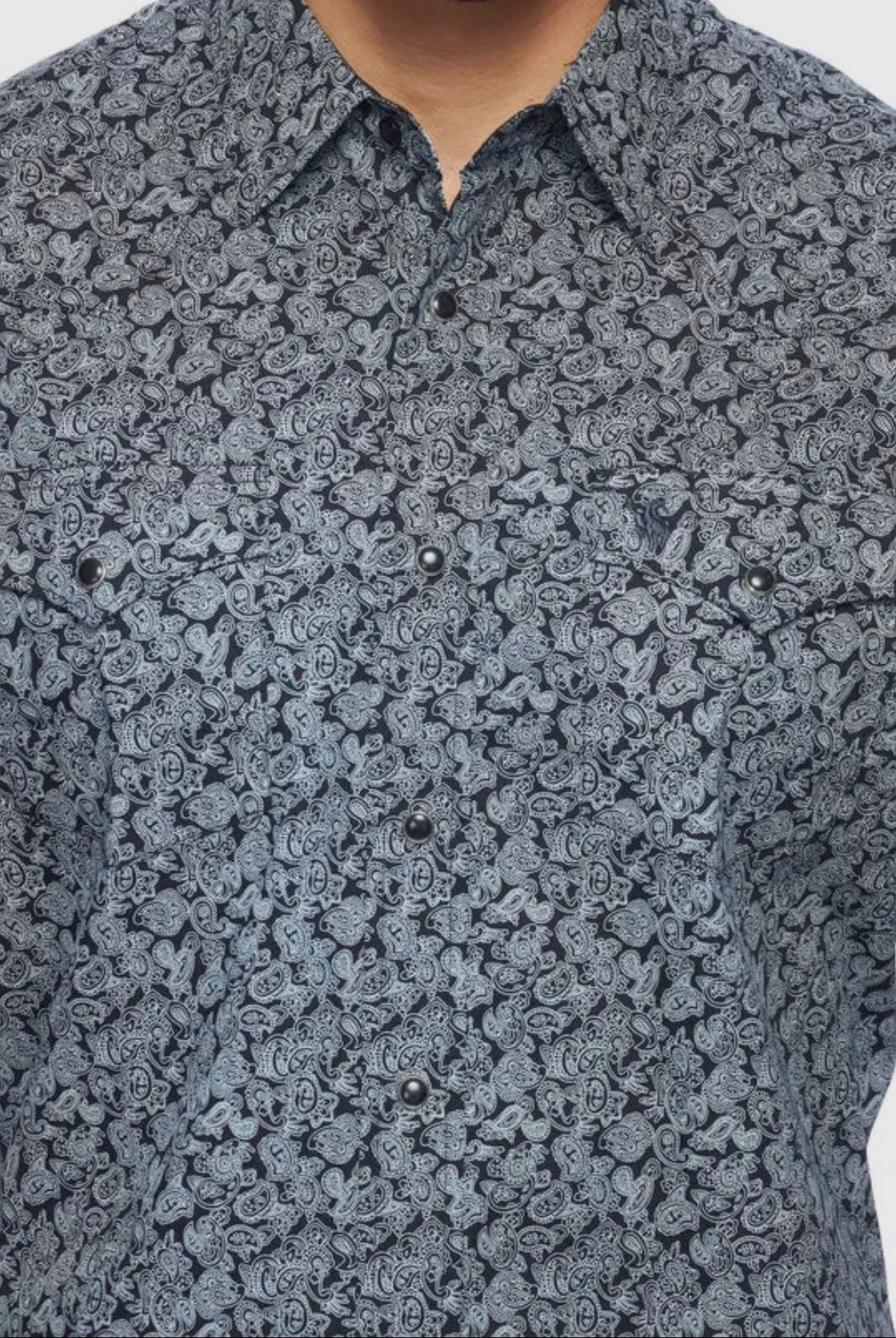 Step up your style game with this Men's Black and White Paisley Button Up. The classic paisley design adds a touch of class to any outfit!